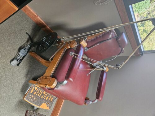 I have a Theo Kochs Dental Chair- Model Columbia which was given to me 30 years agoi by my dad and has sat as a decorative piece in my dental office for that period of time. The oak and leather work had been redone in South Africa where he purchased the chair. The brake works but the chair doesnt pump up and down as far as I can tell.